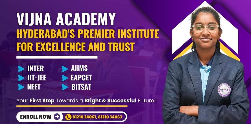 VIJNA Academy is Hyderabad’s trusted destination for expert IIT-JEE, NEET, and Intermediate coaching—where passion meets performance and students become achievers.